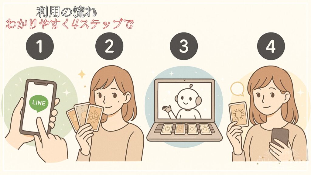 LINEで友だち追加するだけで、あなた専用のAIタロット占いが始まります。スマートフォンを手に取るその瞬間から、優しく、そして的確に「今・これから」の気持ちを掘り下げていきましょう。